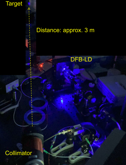 可視DFB-LDのみを用いた自由空間FMCW LiDAR測定(約3 m)に成功